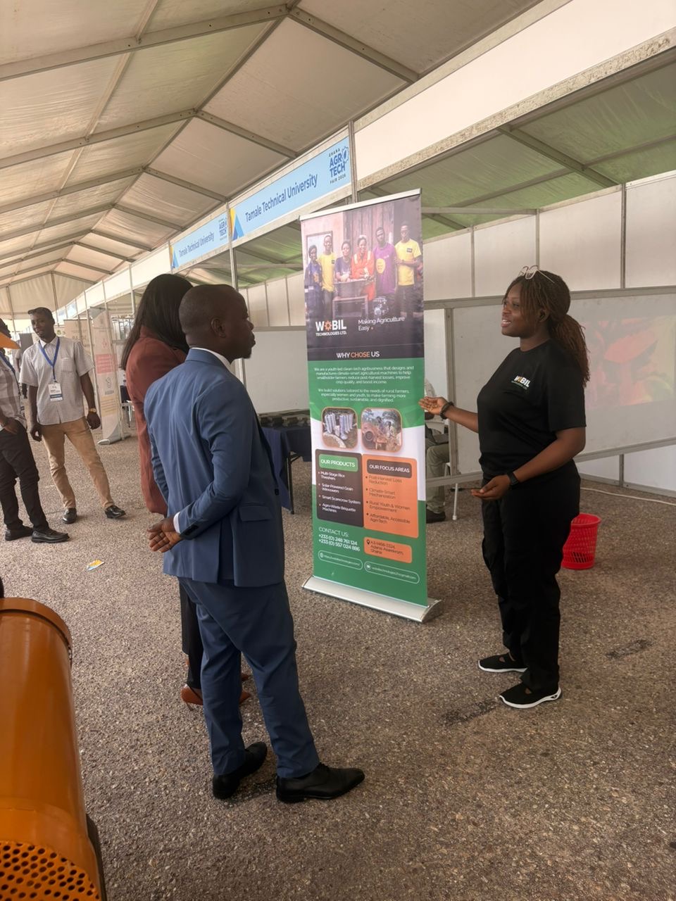 On March 17-19th 2026, one of the winning team's of UNU-INRA's INFoCAT project: Wobil Technologies participated in Ghana's maiden Agritech fair. On March 17th, Ghana's President John Dramani Mahama visited the Wobil Technologies stand where the team spoke about their rice threshers, how they operate and importance to smallholders in Ghana.