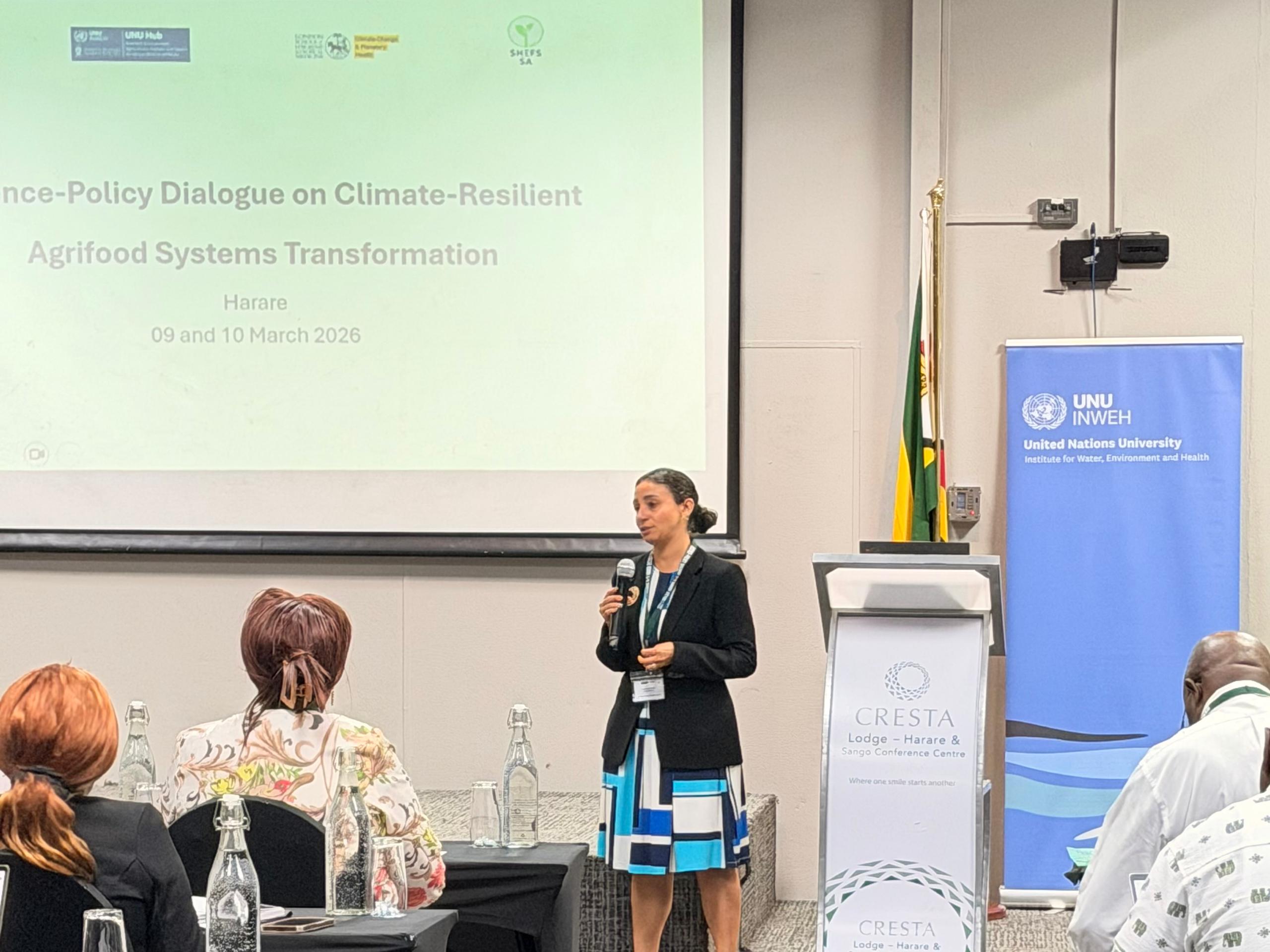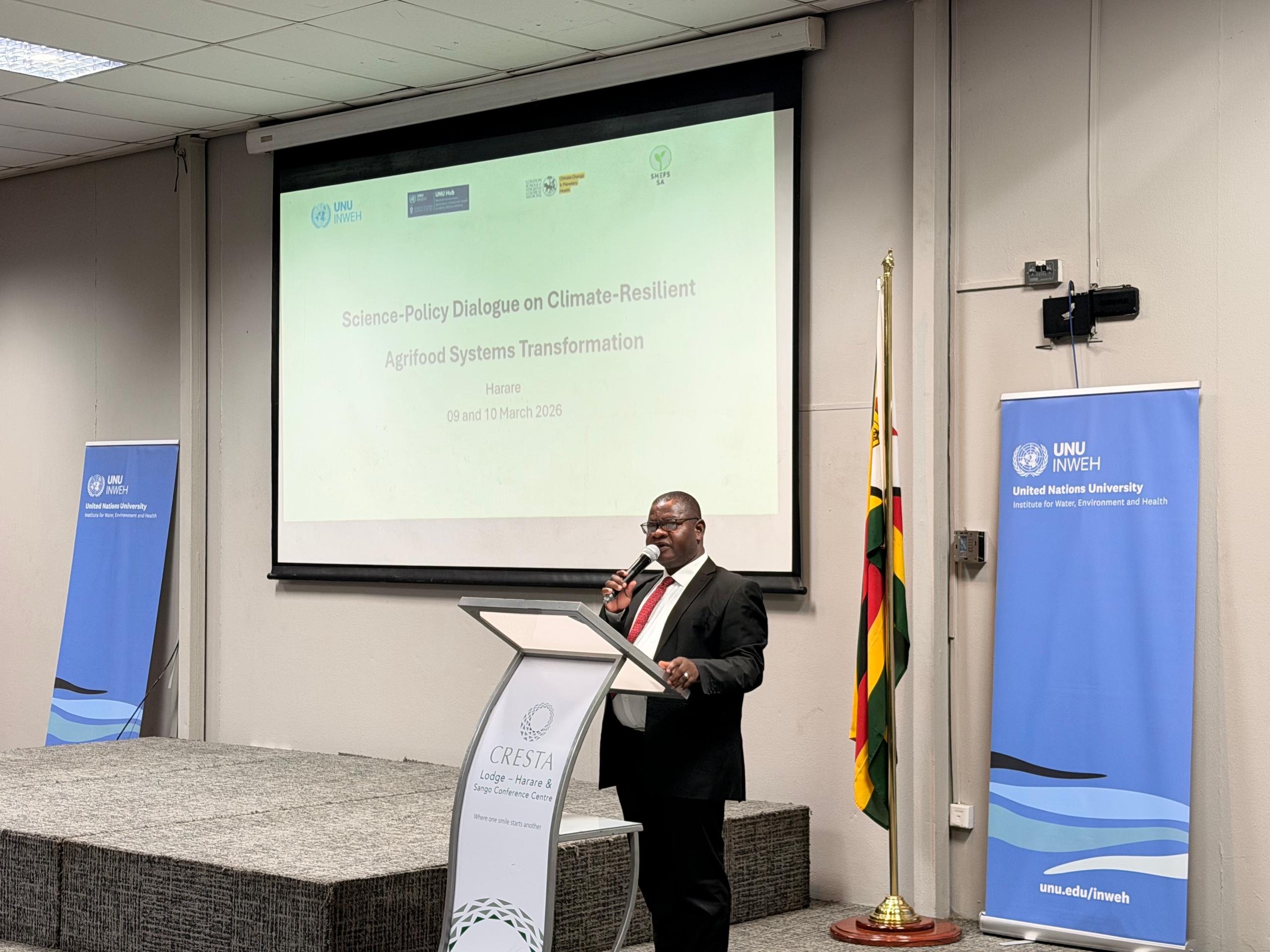 Harare, Zimbabwe, 10 March 2026 — Leading policymakers, scientists, development partners, and practitioners gathered in Harare for a two-day Science–Policy Dialogue titled “Climate-Resilient Agrifood Systems Transformation in Zimbabwe.” The dialogue served as a platform to bridge science, policy, and practice, bringing together representatives from government, United Nations agencies, academia, the private sector, and civil society to explore evidence-based solutions for strengthening Zimbabwe’s agrifood systems in the face of climate change. The event was co-organised by the United Nations University Institute for Water, Environment and Health (UNU-INWEH) and the Sustainable and Healthy Food Systems – Southern Africa Community of Practice (SHEFS-SA CoP), in collaboration with the Ministry of Lands, Agriculture, Fisheries, Water and Rural Development, Government of Zimbabwe, and the University of Zimbabwe.