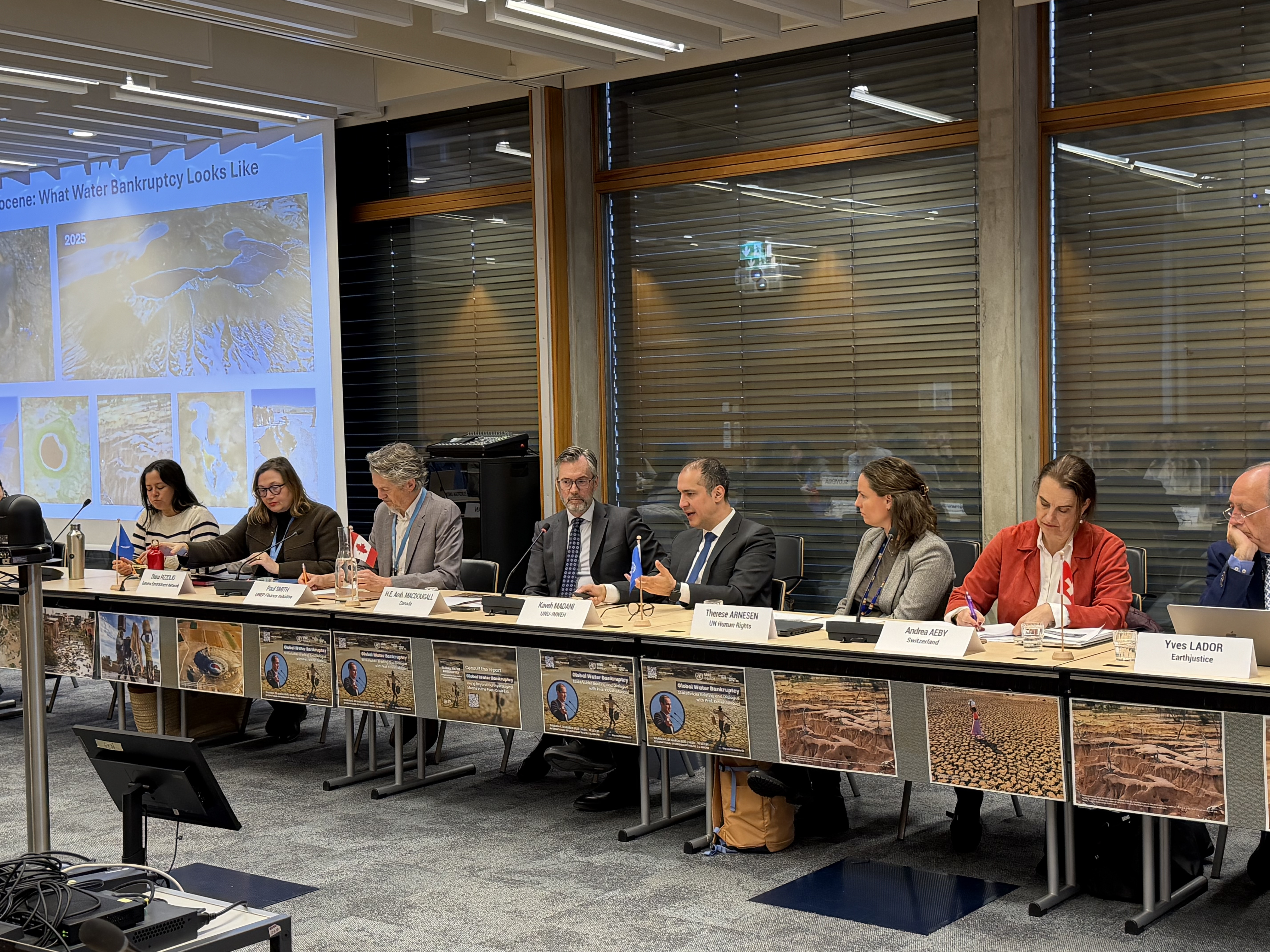 Geneva, Switzerland – 26 March: The United Nations University Institute for Water, Environment and Health (UNU-INWEH) and Geneva Environment Network (GEN) convened a high‑level stakeholder briefing and dialogue convened at the International Environment House II to present and discuss the findings of the UNU-INWEH flagship report Global Water Bankruptcy: Living Beyond Hydrological Means in the Post‑Crisis Era. The event brought together representatives from Member States, United Nations entities, international organizations, academia, and civil society to discuss the implications of accelerating water system failures for global governance, development, and cooperation.