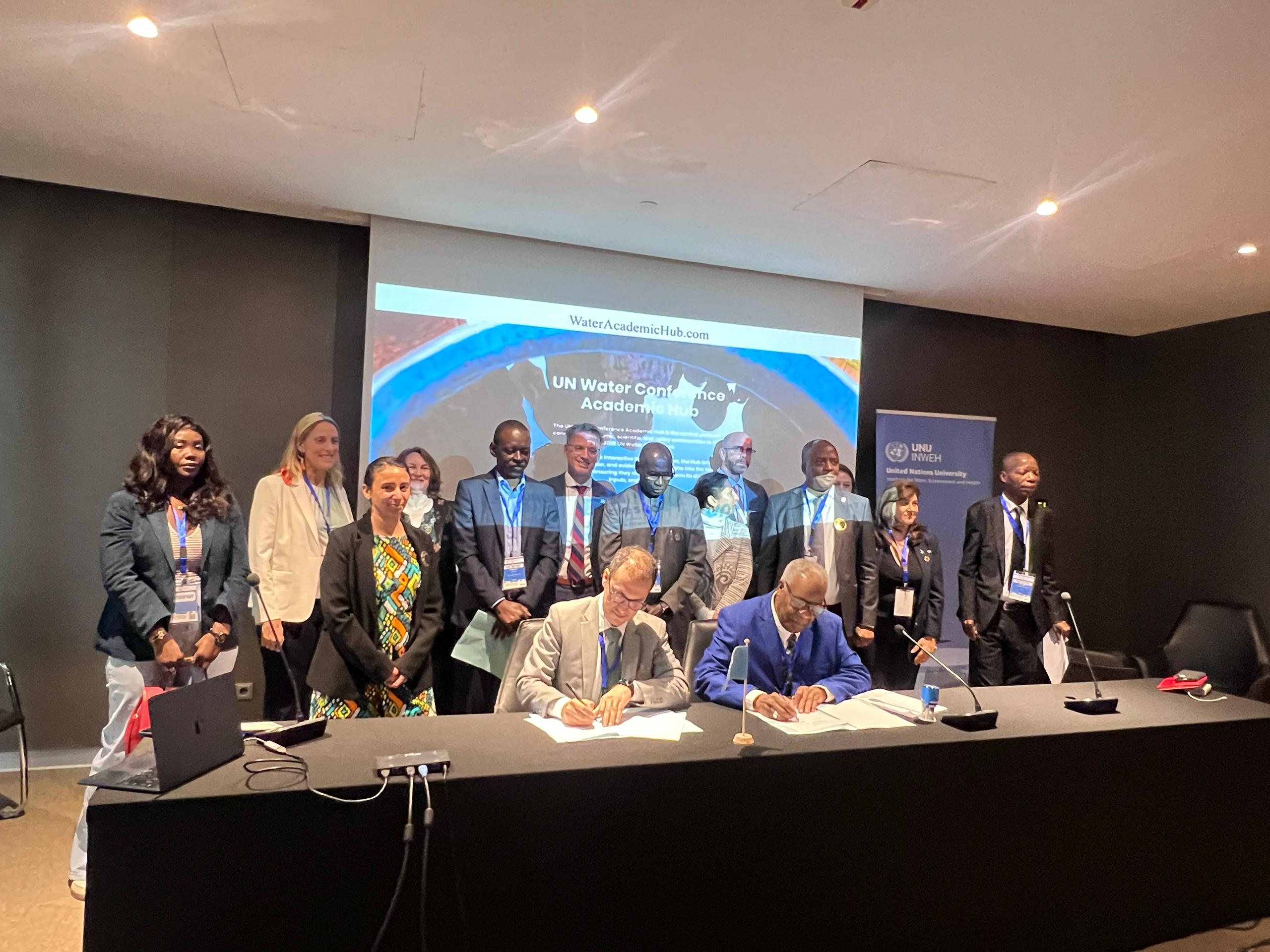 At the conclusion of the side event, UNU-INWEH signed a Memorandum of Understanding with l’École doctorale eau, qualité et usages de l’eau (EDEQUE) to strengthen research and training in support of effective water stewardship. The partnership will promote collaborative research, capacity development, and knowledge exchange across water management, climate resilience, governance, and hydrodiplomacy, with a strong focus on institutional strengthening and African-led solutions for sustainable water and sanitation.