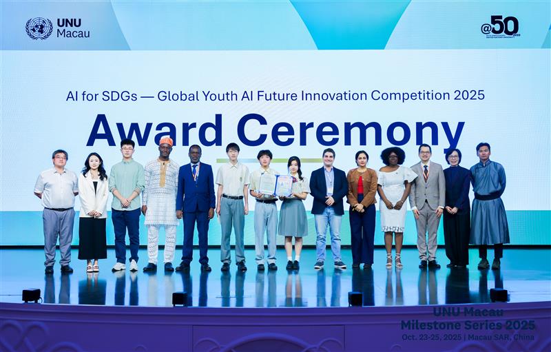 The AI for SDGs – Global Youth AI Future Innovation Competition 2025 concluded with the announcement of five winning teams, each recognized for their contributions to sustainable development through artificial intelligence. The final awards were presented at the UN80 and UNUat50 Celebration Dinner, held at Wynn Palace and sponsored by Wynn.