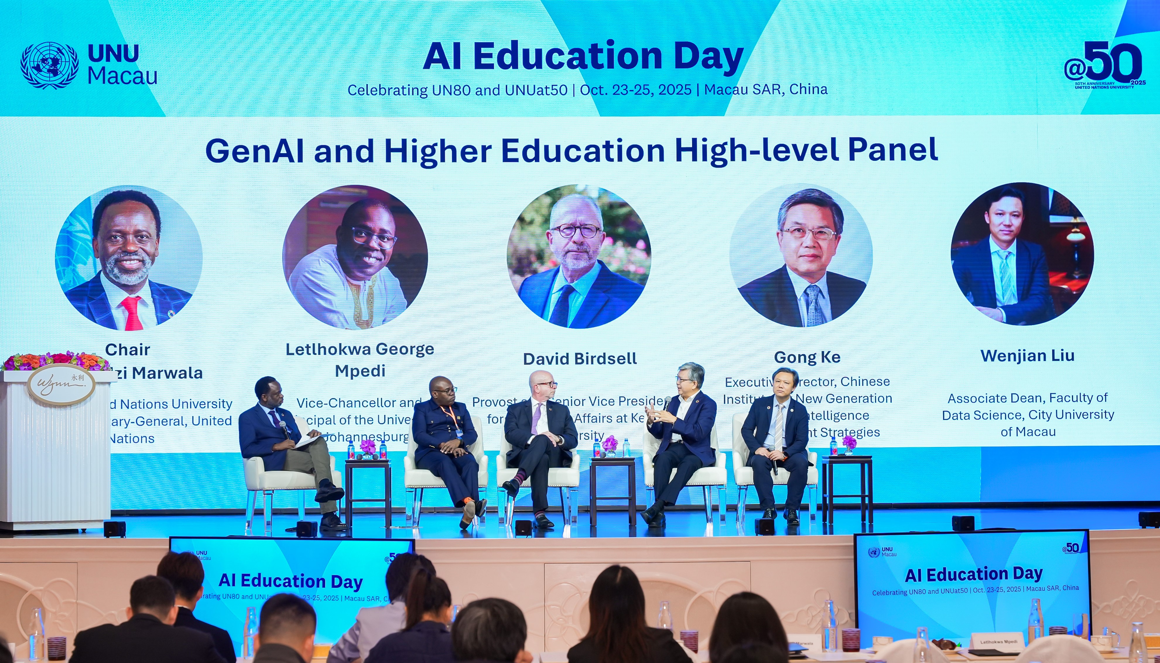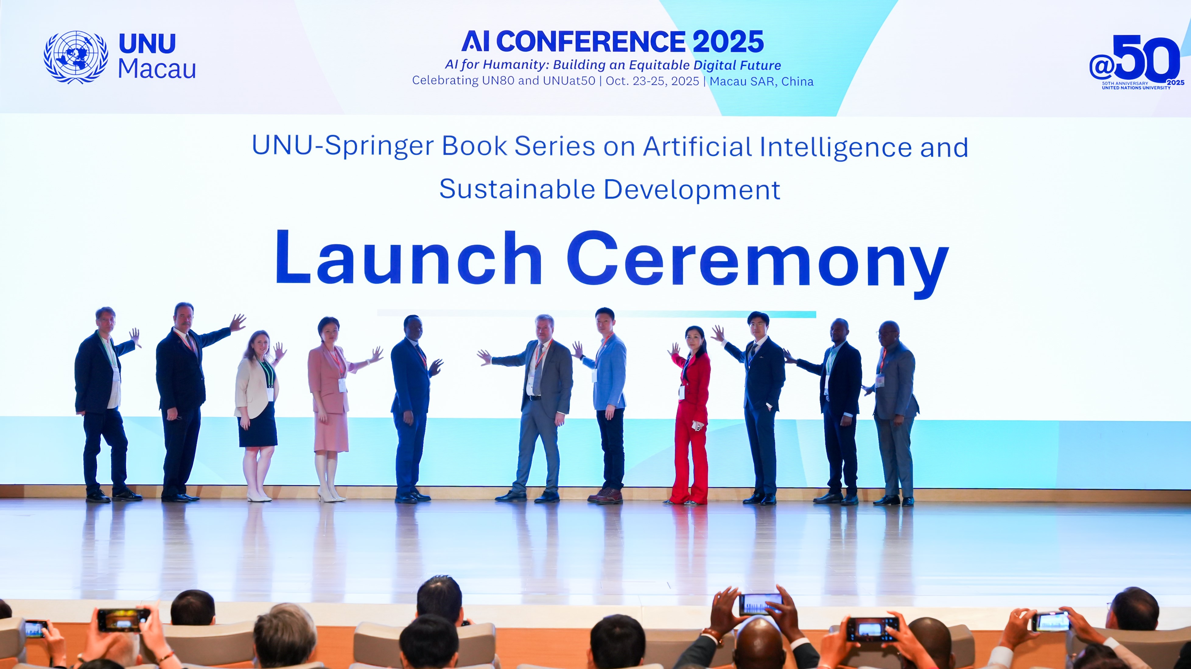 UNU Macau AI Conference (24 October, Galaxy International Convention Center): Hosted by Galaxy Entertainment Group as the venue sponsor, the conference featured 30 thematic discussions of AI + and 4 keynote speeches. The AI and Sustainable Development book series was officially launched.