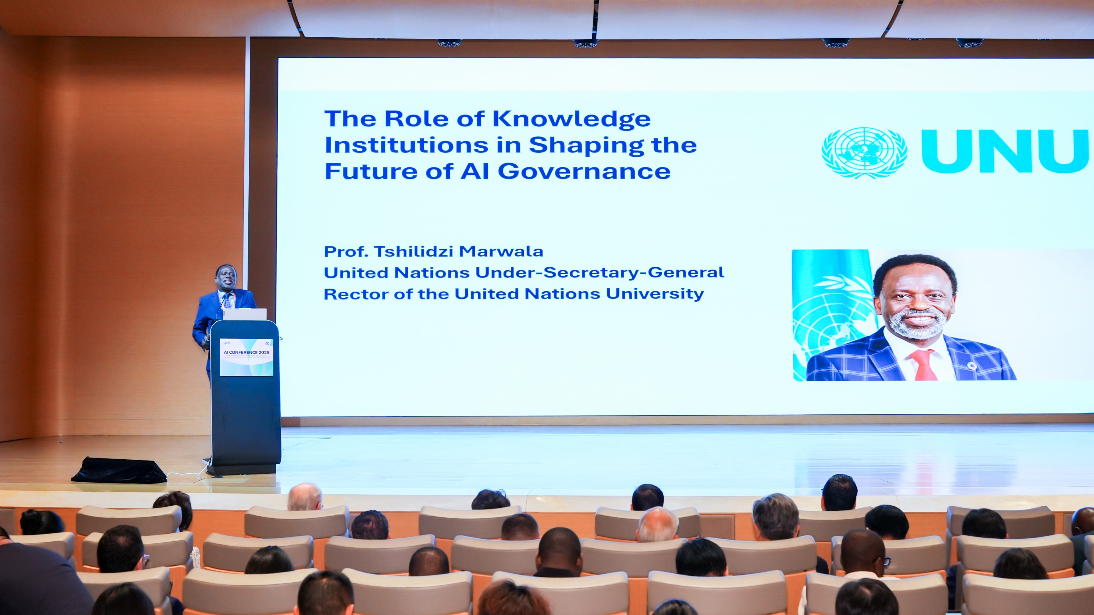 The series welcomed over 500 participants from more than 30 countries. Professor Tshilidzi Marwala delivered a keynote academic address in person as part of the “UNU Rector’s AI Lecture Series II.” Dr. Amandeep Singh Gill and Dr. Felipe Paullier delivered video remarks, alongside contributions from AI experts across government, academia, industry, and international organizations.